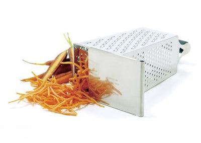 This versatile stainless steel box grater features fine, medium, and coarse grating surfaces, plus a slicing side—perfect for all your kitchen prep. The built-in sliding tray at the base makes it easy to collect and transport ingredients, while the soft Santoprene™ handle provides a comfortable, non-slip grip that reduces hand fatigue.