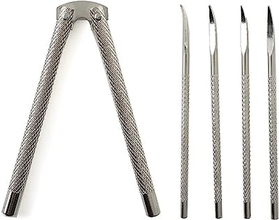 The handy nut cracker measures 4.75"/12cm and each pick measures 4.5"/11.5cm. These beautifully textured tools are ideal for eating crab, lobster, shellfish and all types of nuts. Textured surface on both the spring-action cracker and the picks prevents the cracker and picks from slipping in your hands. Picks are helpful when you need to remove meat from the shell. Reinforced hinge for additional strength. Sturdy metal tools are easy to clean. Hand washing recommended.