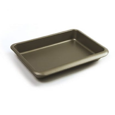 Rectangular Cake pan has a uniquely designed wide lip edge, for ease of handling. Pan Measures 13" x 9" x 2 x 33cm x 23cm x 5cm Made of industrial grade nonstick material Uniform baking prevents "hot spots" and burning Nonstick finish makes removal of baked goods effortlessly and cleaning easy Hand washing recommended