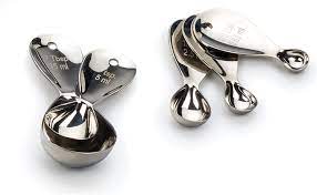 • Set includes 1-tablespoon, 1-teaspoon, 1/2-teaspoon, 1/4-teaspoon, and 1/8-teaspoon.