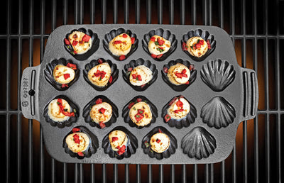 This quality cast iron Scallop grill pan cooks 18 delicious scallops and is pre seasoned to create naturally nonstick surface without added oil fats. This pan is Multi-functional and suitable for many different cooking methods. Hand wash even before first use and dry immediately- not Dishwasher safe