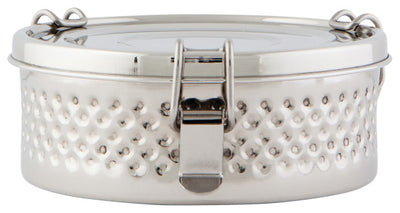 Originally used to pack up a homemade meal for transport through the busy streets of India, the tiffin is made up of stainless steel containers that stack together. A snap closure keeps contents secure while a handle makes carrying convenient.