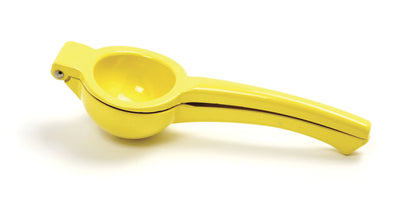 The juicer measures 8.75 x 22 cm and is constructed from durable die-cast aluminum. Its baked-on coating will not rust or react to citrus juices. To use, place the citrus half cut-side down in the juicer and squeeze. This lemon yellow juicer is recommended to be hand washed.