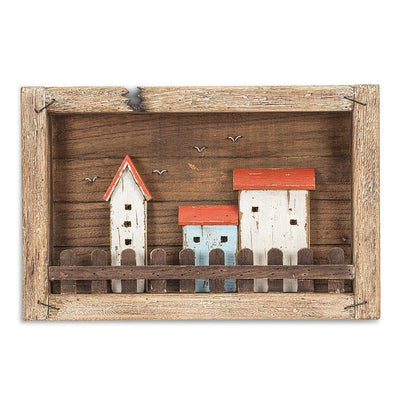 Enhance your home's aesthetic with our Small Houses Wall Decor. This delightful piece showcases a textured, weathered house motif that radiates a warm, rustic allure. With dimensions of roughly 10x16 inches, it serves as an ideal element to highlight your walls and bring the quaint, comforting feel of a country cottage into your space. Experience the homely embrace with this distinctive and alluring artwork.