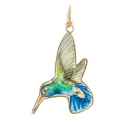 Appreciating the beauty of this Small Hummingbird Ornament doesn't require you to be an avid bird-watcher. Made of metal, this ornament showcases a vivid and lifelike portrayal of a brightly-colored hummingbird captured in mid-flight, perfect for enhancing your spring decorations. A larger version is also available.