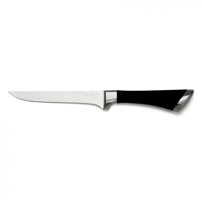 The NorPro Boning/Fillet Knife boasts a stainless molybdenum Vanadium steel blade with tapered grinding and a stone-finished edge. It features double bolsters for exceptional balance and comfortable, ergonomic soft-grip handles. The knife has a 3/4 tang, with the blade measuring 6 x 15cm and the handle 5.25 x 13.5cm. The handles are crafted from durable ABS plastic. To maintain the blade's sharpness, hand washing is recommended; dishwashers can dull and chip the blade.