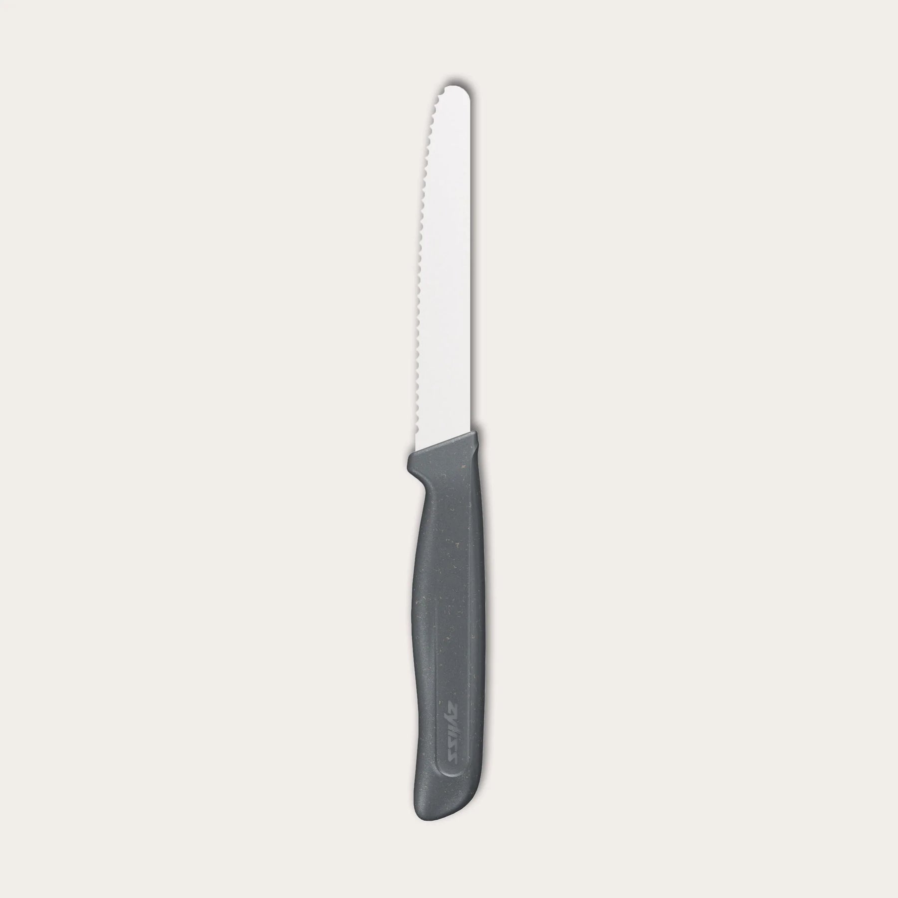 This specialized Serrated Zyliss Tomato Knife is designed for clean slicing of tomatoes and other soft produce. The serrated blade glides through delicate skins without crushing, delivering smooth, clean slices every time. Easy to rinse and maintain, it’s perfect for repeated everyday use.