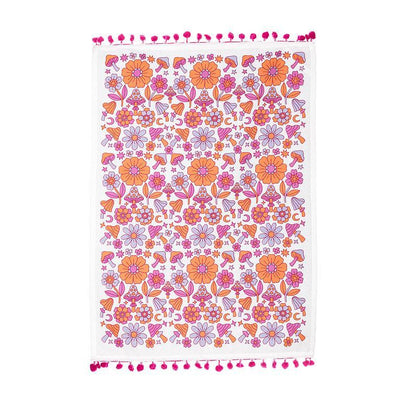 You don't have to be a hippie or a fan of psychedelic design to appreciate the vibrant colors and flair of this Groovy Mushrooms Kitchen Towel. Made from cotton, this white towel features a pink, purple, and orange assortment of graphic-style mushrooms and blooms, adding a groovy touch to any kitchen decor. Other kitchen towels are also available.