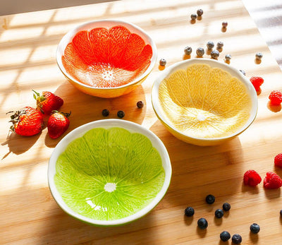 Bring some sun-kissed brightness to your kitchen or dining table with this charming Citrus Bowl in Green. Crafted out of ceramic, this beautiful hand-painted bowl features the pebble-like texture of citrus fruit on the inside, with its juicy, oh-so-sweet flesh painted on the inside to add a fun splash of colour to just about anything! Also available in other colours.