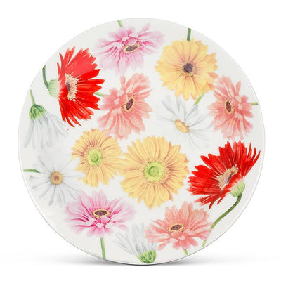 Make any occasion or entertaining affair more elegant with this charming Gerbera Daisy Small Plate. Crafted out of stoneware, this circular white plate features a beautiful array of painted gerbera daisies in shades of red, pink and orange to complement anything you serve. Other Gerbera Daisy housewares also available.