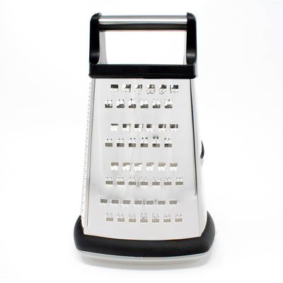 This all-in-one grater makes prep and storage a breeze! Featuring fine, medium, coarse grating surfaces and a slicer, it's perfect for cheese, potatoes, squash, carrots, citrus, cucumbers, and more. The included catcher with lid (1.5 cups / 12 oz) nests neatly in the grater base (5 cups / 40 oz), making storage compact and convenient. A comfortable handle and non-slip rubber base provide added stability, and the removable base allows for easy cleaning.