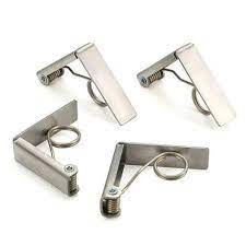 RSVP Tablecloth Clips are crafted from 18-8 stainless steel, which is weatherproof and rust-resistant. Their spring-action design accommodates a variety of tabletops up to 1.25 inches thick, featuring a low-profile design for an understated appearance. They are suitable for most table thicknesses and sizes, providing a solution to the longstanding issue of outdoor tablecloths being blown away by strong winds. These clips are also ideal for securing cloths on party and banquet tables.