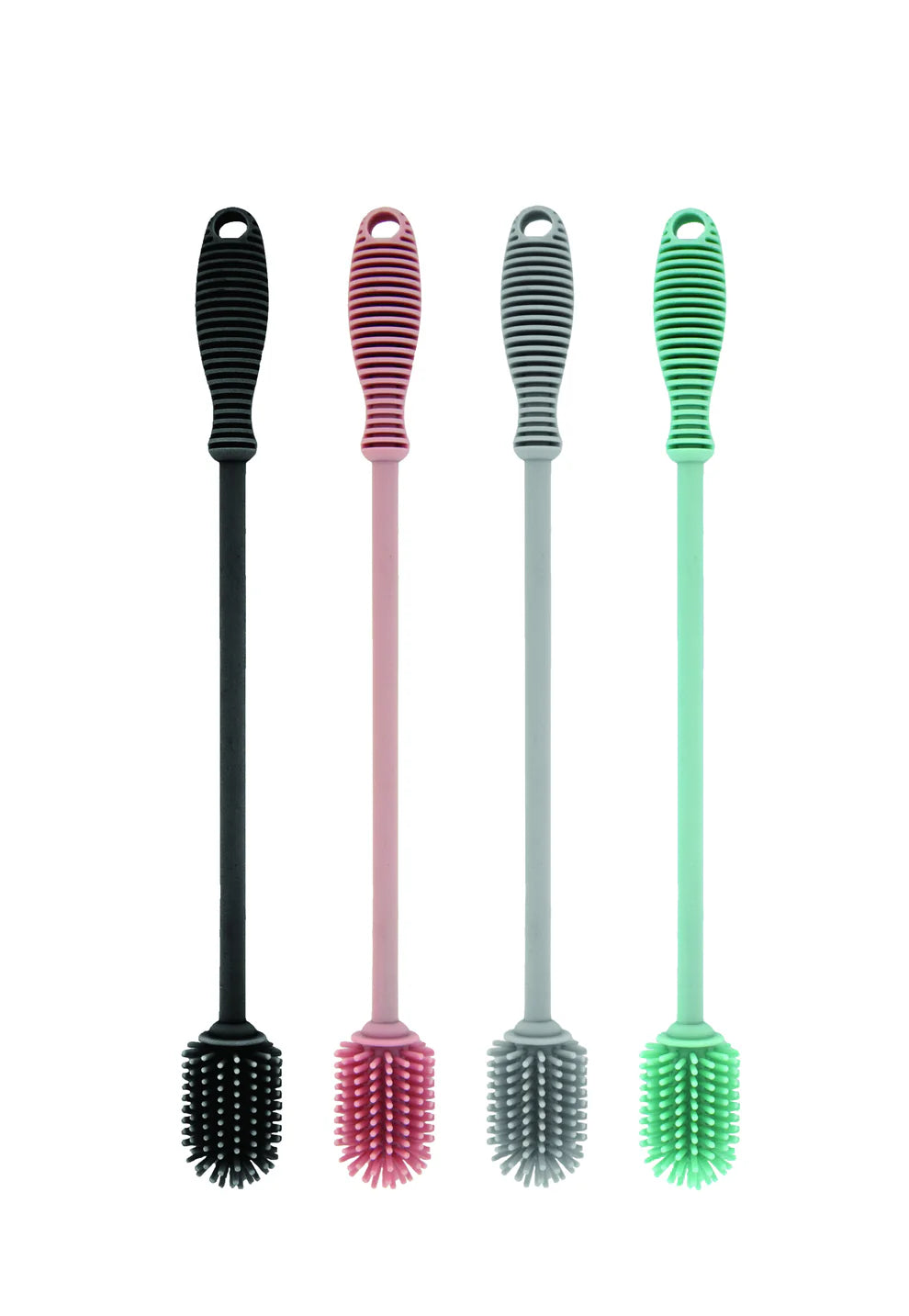 Clean with ease! This narrow, long-handled brush is ergonomically designed for water bottles, baby bottles, vases, stemware, and other hard-to-reach containers. The gentle, durable silicone bristles are safe on all surfaces and more hygienic than traditional fiber brushes. Dishwasher safe and BPA-free. Perfect for everyday use, recycling, or party cleanup.